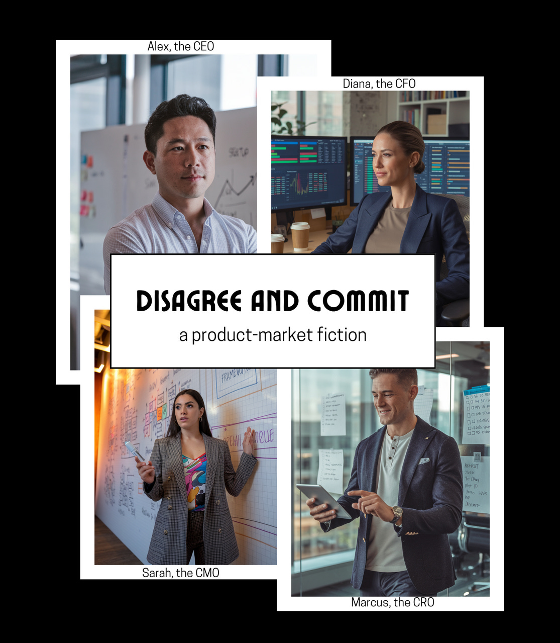 "Disagree and Commit - a product market fiction" chronicles a startup where Marketing thinks it's crushing it, Sales is drowning in bad leads, Customer Success resorts to interpretive dance, and their CFO keeps naming spreadsheets after Greek tragedies.
